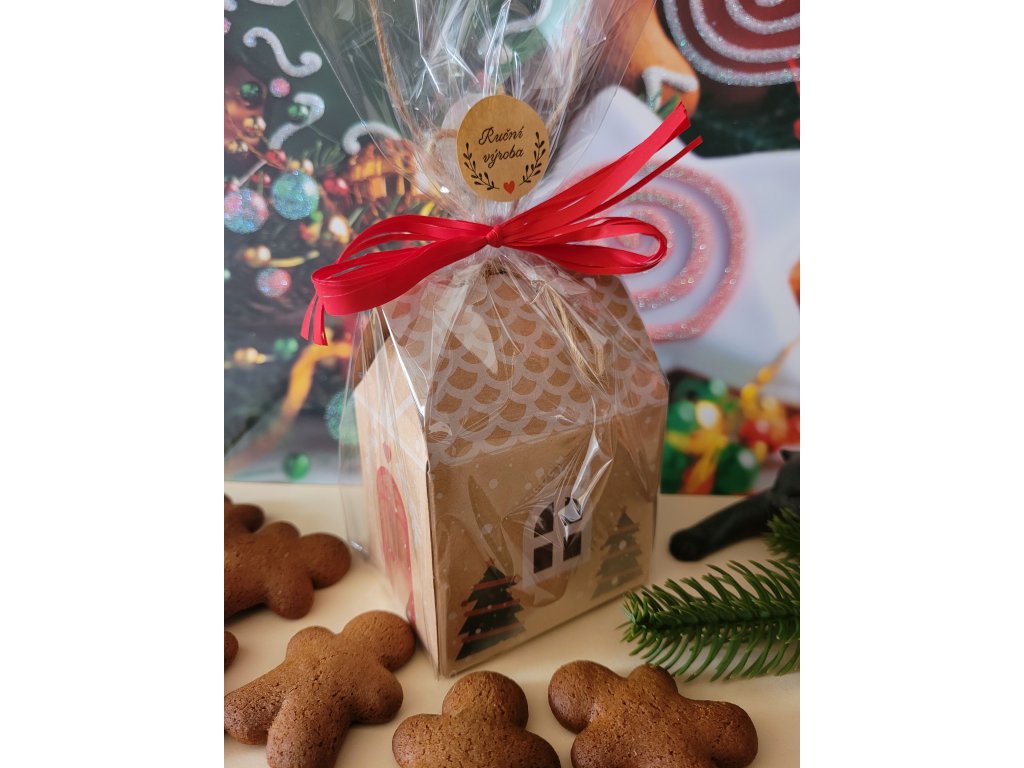 Baleno: Papírový kartonový obal domeček, jutový provázek, PP sáček, lýko, etikety dle platné legislativy na zadní nebo spodní straně obalu.