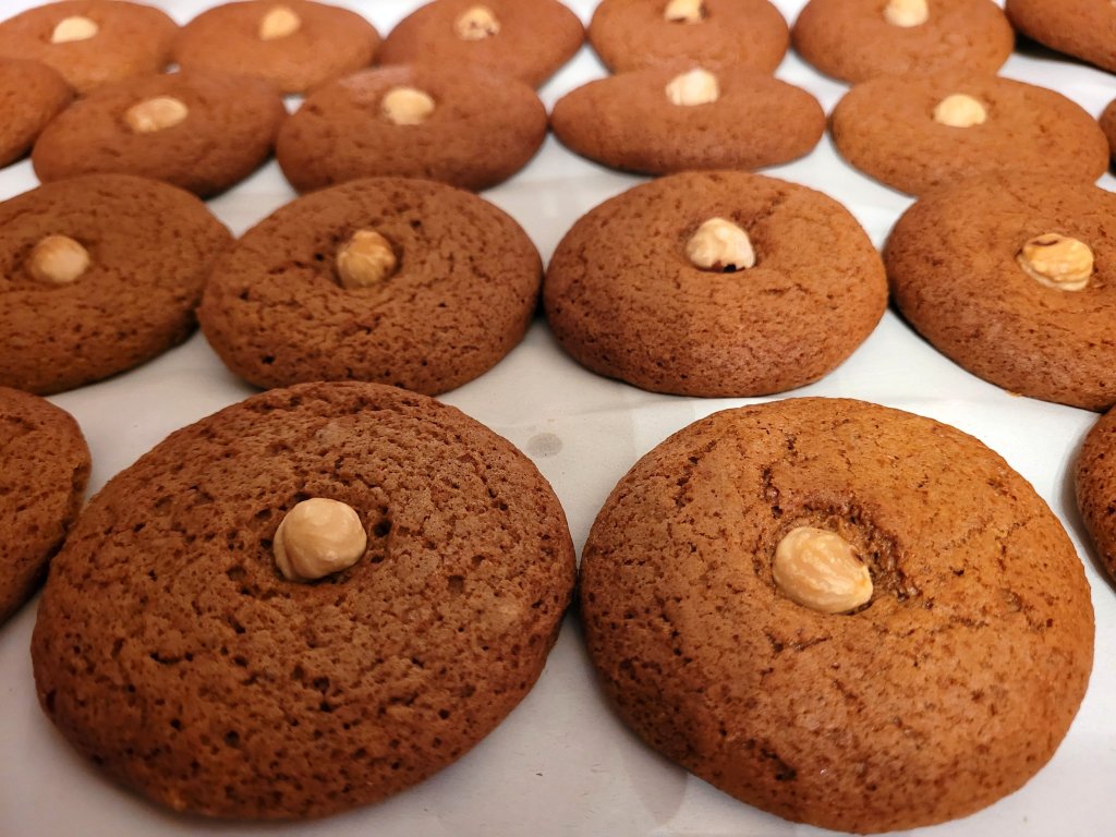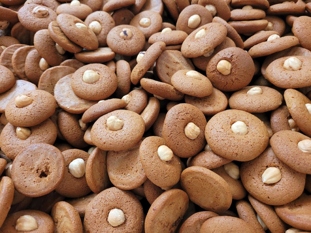 Perníková delikatesa! Malé kulaté perníčky obsahují kromě vyššího obsahu včelího medu také pastovaná lísková jádra a celá pražená loupaná lísková jádra!
