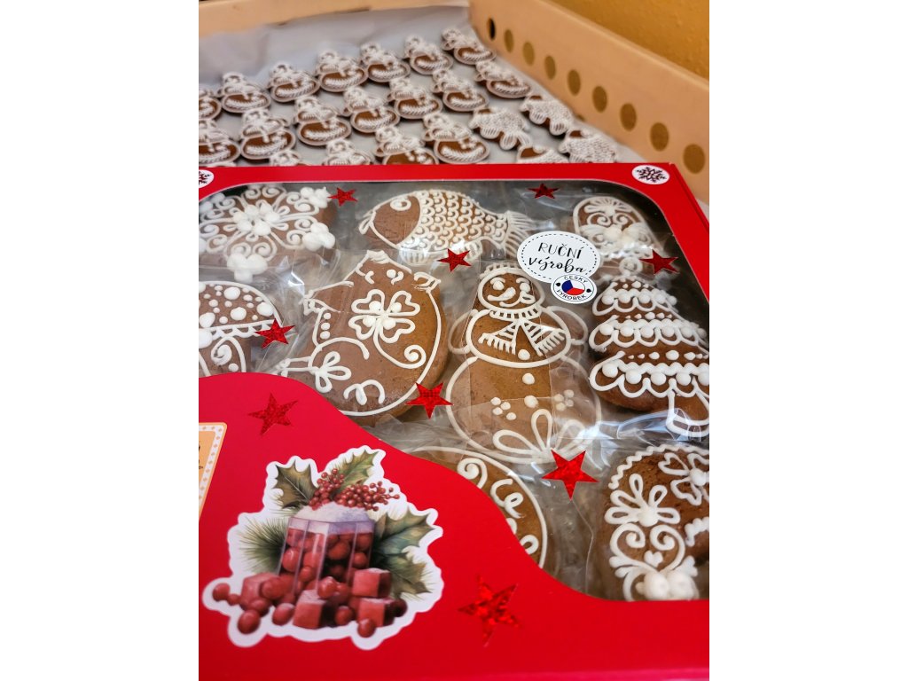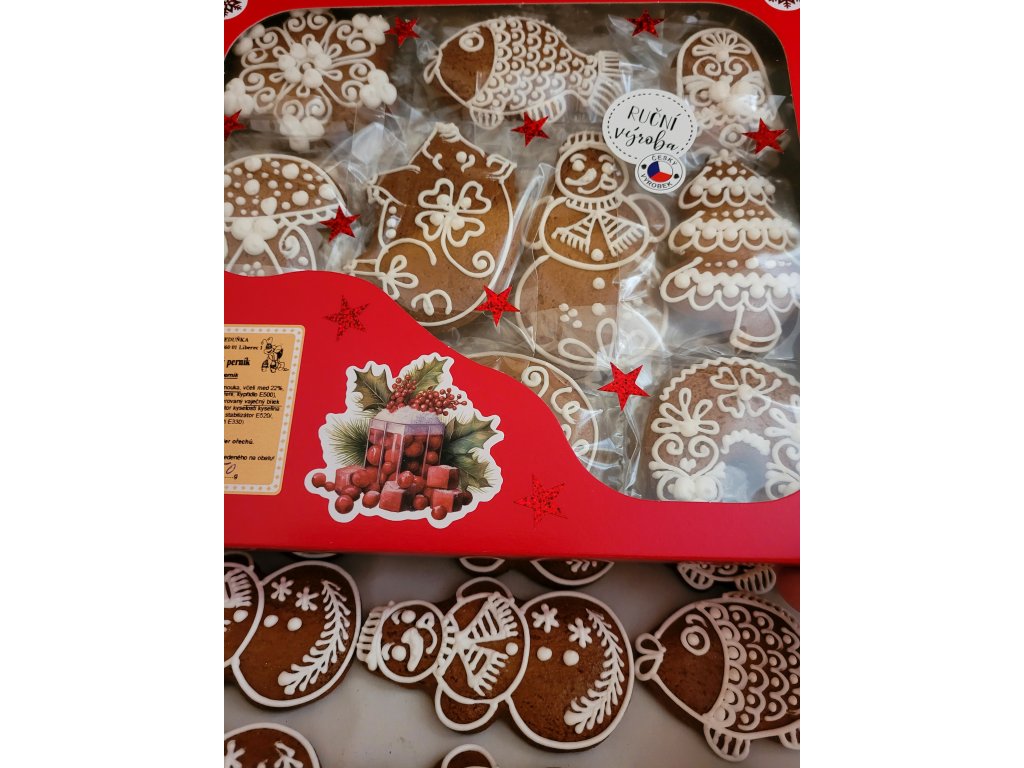 Velikost perníčků cca 5 až 8 cm. Hmotnost netto 250 g. Minimální trvanlivost 6 měsíců od data výroby. Výrobek neobsahuje žádná barviva a konzervanty!