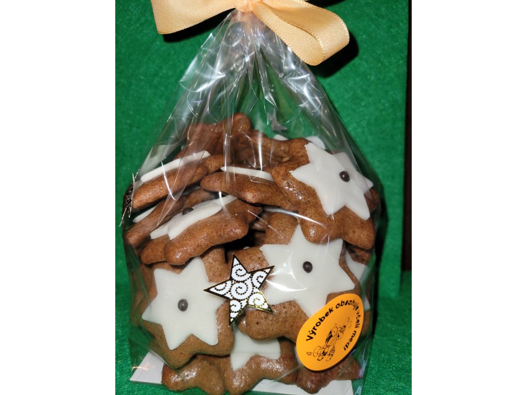 Měkoučký perníček v kombinaci s kakaovou polevou a mandlovou mléčnou hmotou představuje ideální chuťovou kombinaci! Vyráběné tvary jsou srdíčka nebo vánoční hvězdičky. Zákazníci většinou nakupují oba druhy kvůli pestrosti tvarů.
